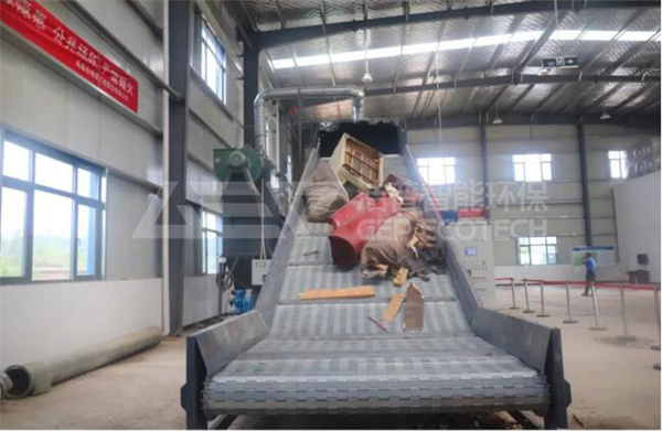 這條生產(chǎn)線主要由金屬鏈板輸送機(jī)、大件垃圾撕碎機(jī)、除鐵系統(tǒng)、密封式皮帶輸出系統(tǒng)、脈沖除塵系統(tǒng)和智能控制系統(tǒng)組成。重載鏈板輸送機(jī)可滿足大體積、大重量物件的快速輸送;大件垃圾撕碎機(jī)動力強(qiáng)勁、剪切力大,撕碎大件家具不在話下;自卸式除鐵器磁場強(qiáng)度高、吸力大、自動化程度高;密封式皮帶機(jī)輸送能力大、功率消耗小、防塵效果好;脈沖除塵系統(tǒng)清灰動能大、除塵效率高;智能控制系統(tǒng)采用西門子PLC+觸摸屏控制,通過對液壓、軸承、電機(jī)、減速機(jī)等關(guān)鍵部位監(jiān)測,實現(xiàn)多重保護(hù),保障安全運行。