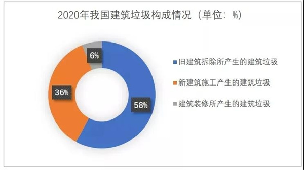 建筑垃圾的來(lái)源主要有三個(gè)方面:舊建筑拆除產(chǎn)生、新建筑施工產(chǎn)生以及建筑裝修產(chǎn)生。從2020年我國(guó)建筑垃圾的構(gòu)成分布來(lái)看,舊建筑拆除所產(chǎn)生的建筑垃圾占建筑垃圾的58%,新建筑施工產(chǎn)生的建筑垃圾占36%。由此可見(jiàn),建筑物的拆除階段和新建筑的施工階段是建筑垃圾的控制關(guān)鍵點(diǎn)。