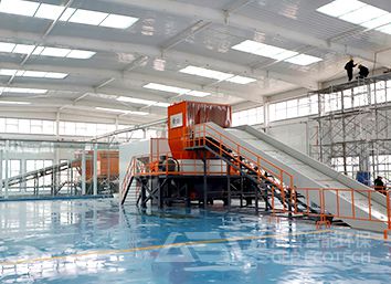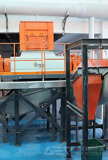 廚余垃圾由行車抓斗送至潔普廚余垃圾處置線,先由廚余垃圾破碎機進行粉碎,然后由磁選機分選出垃圾內(nèi)的金屬物品。破碎分選后的廚余垃圾再輸送到細碎和分選設(shè)備,進行有機物與無機物分離。